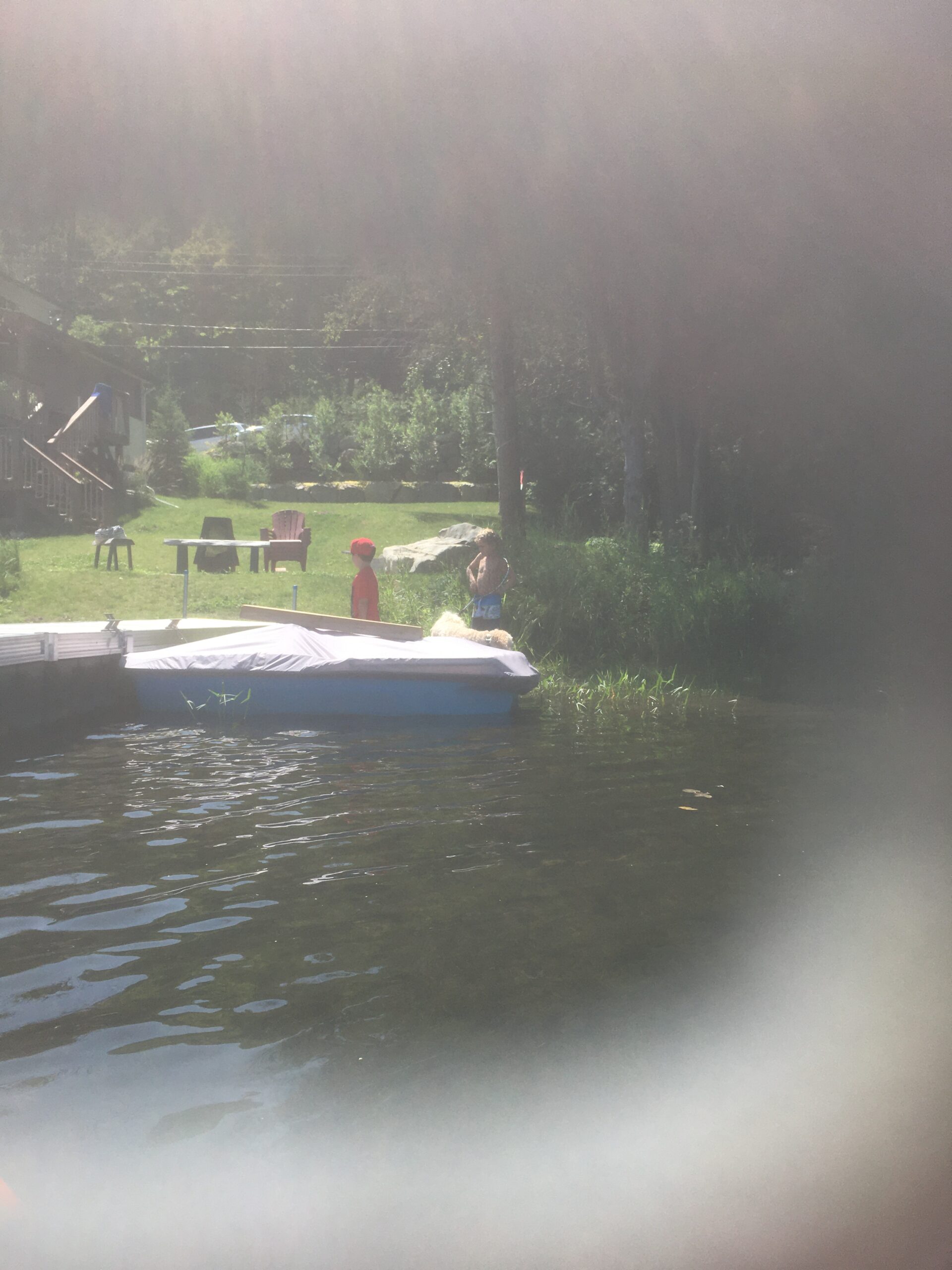 People on the motorized dock belonging to owner of #53 frequently play music from loudspeakers while motoring around Lac Morency. The music carries all around the lake. These people stop the dock on the lake, sometimes very close to others’ properties, play loud music, and generally do not respect others’ enjoyment of their waterfronts. This is prohibited by the same regulation, but instead of letter (b) defining distance between properties as cited above, see letter (d), which defines noise nuisance as originating from loudspeakers situated on a lake and which interferes with the peace or wellbeing of other users of the lake or citizens.: sur les lacs et cours d’eau de façon à troubler la paix ou le bien être des autres usagers ou des citoyens.