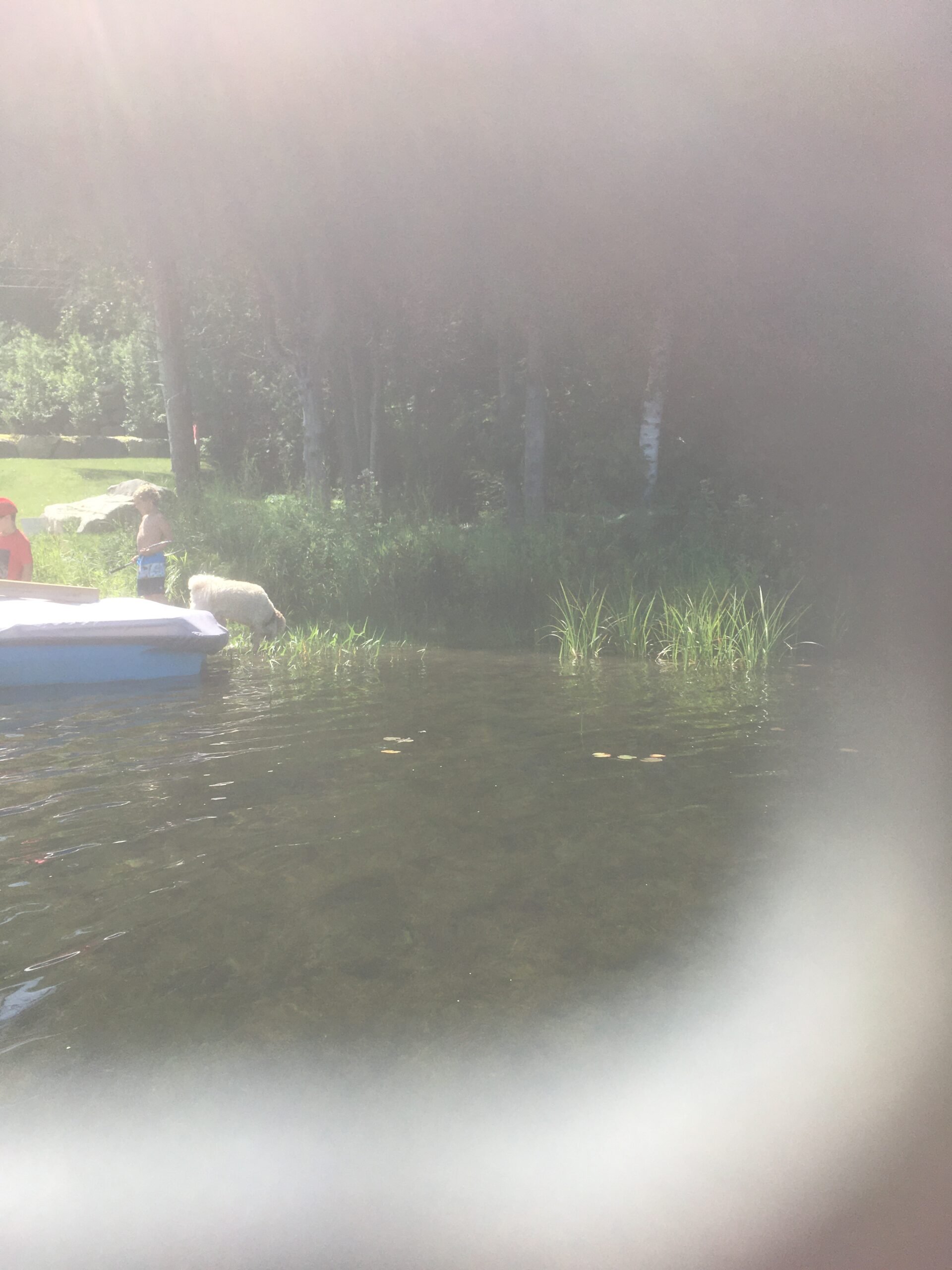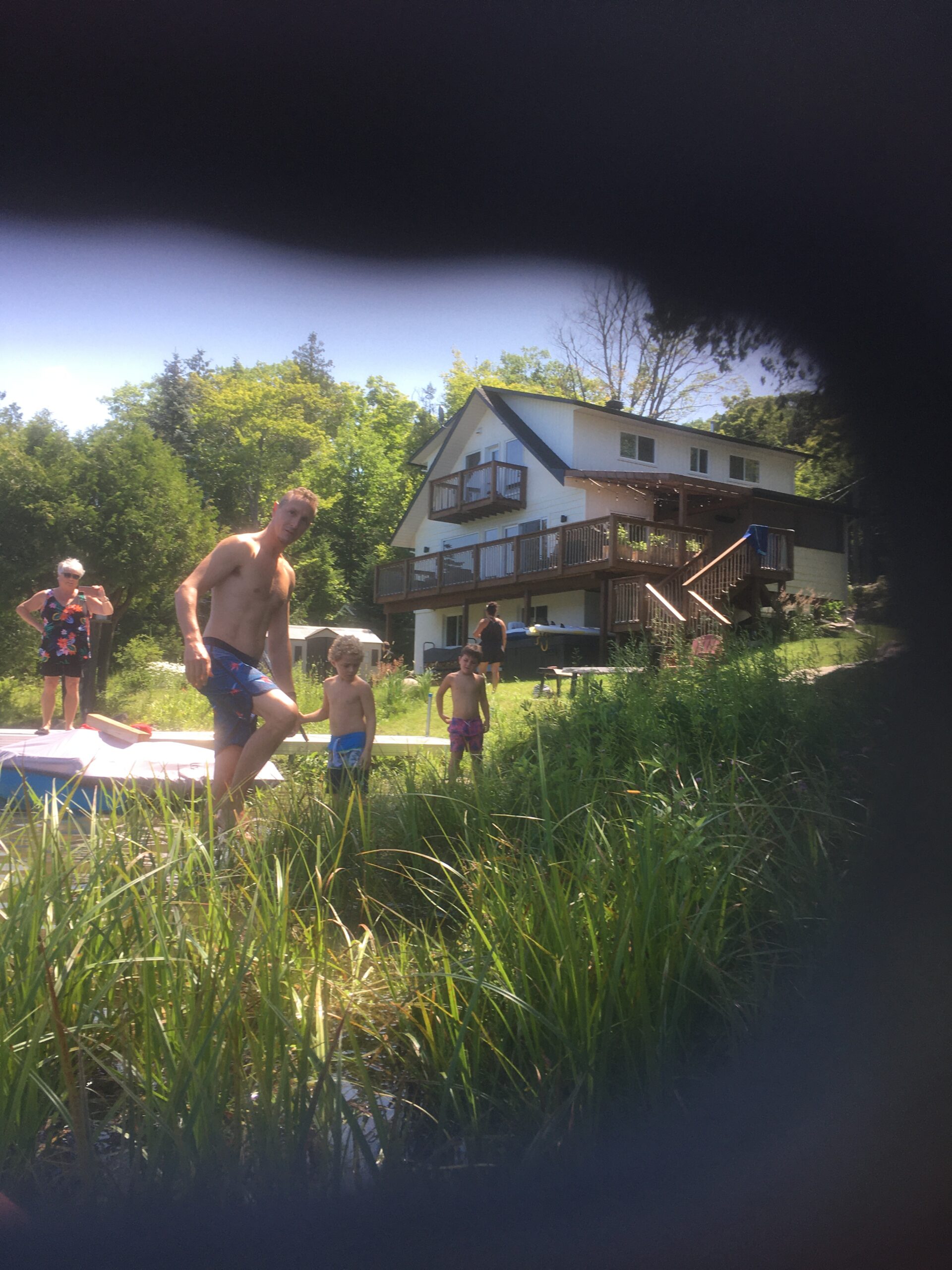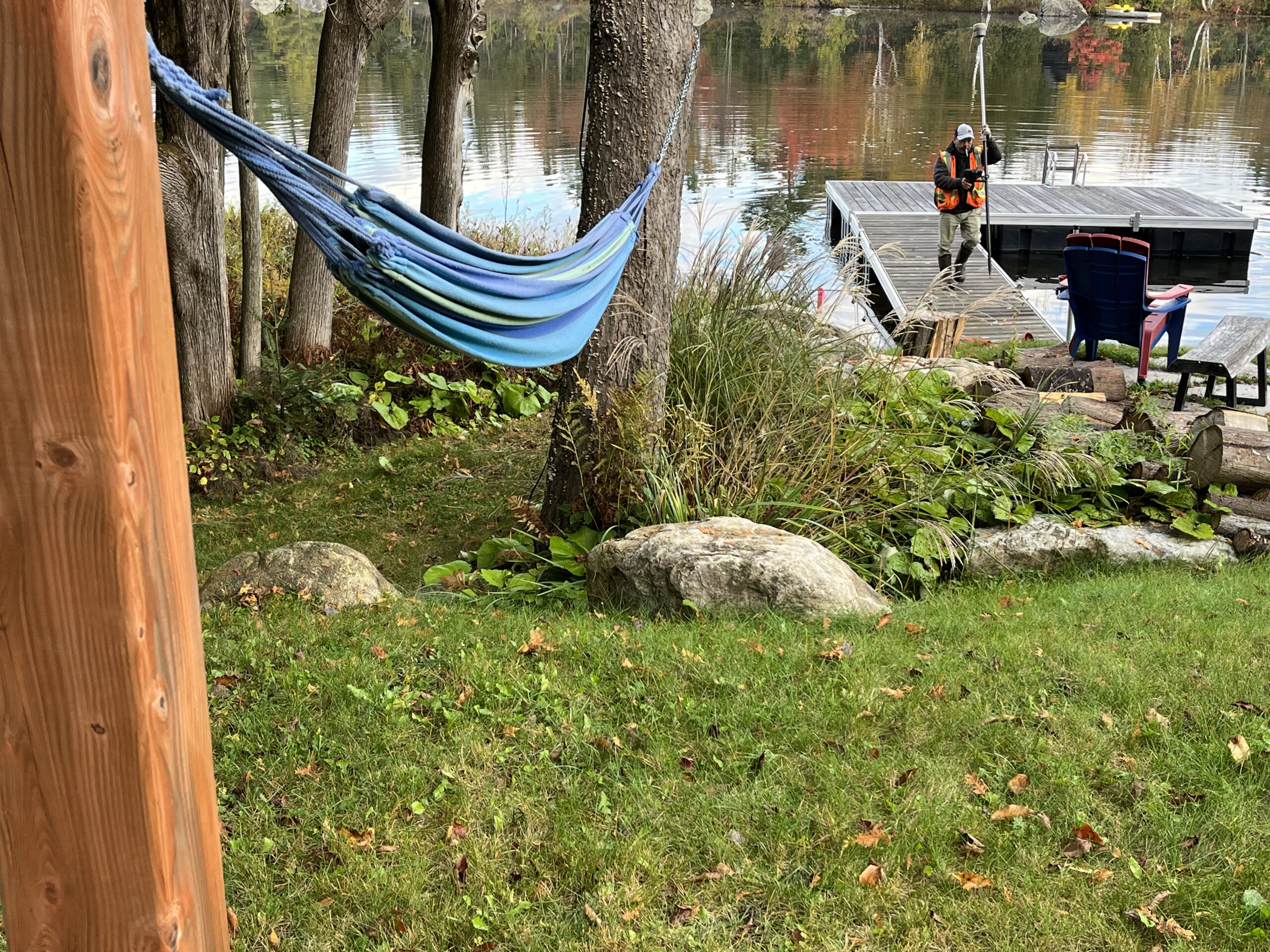 #53 owner and dozens of guests at a time walk over property line and trespass on #57’s property. This occurs when they lie in the hammock, or walk on the shore next to the dock. Included in this intermittent trespass is a dog, regularly on #57 property off leash.