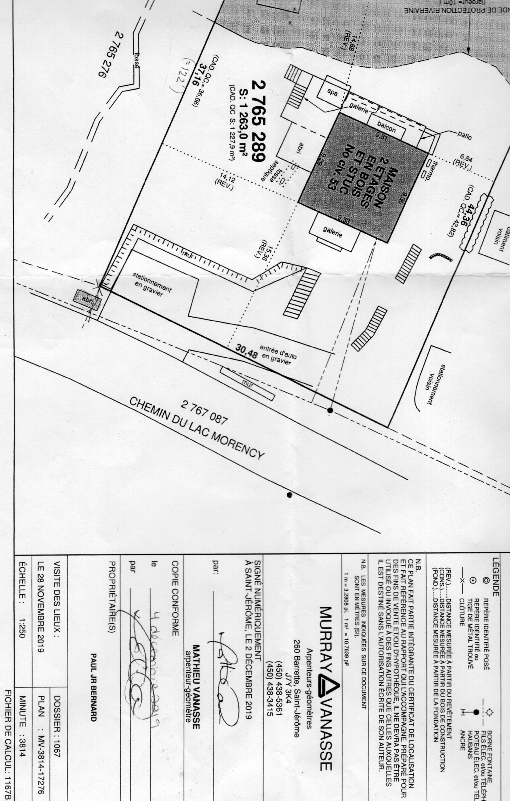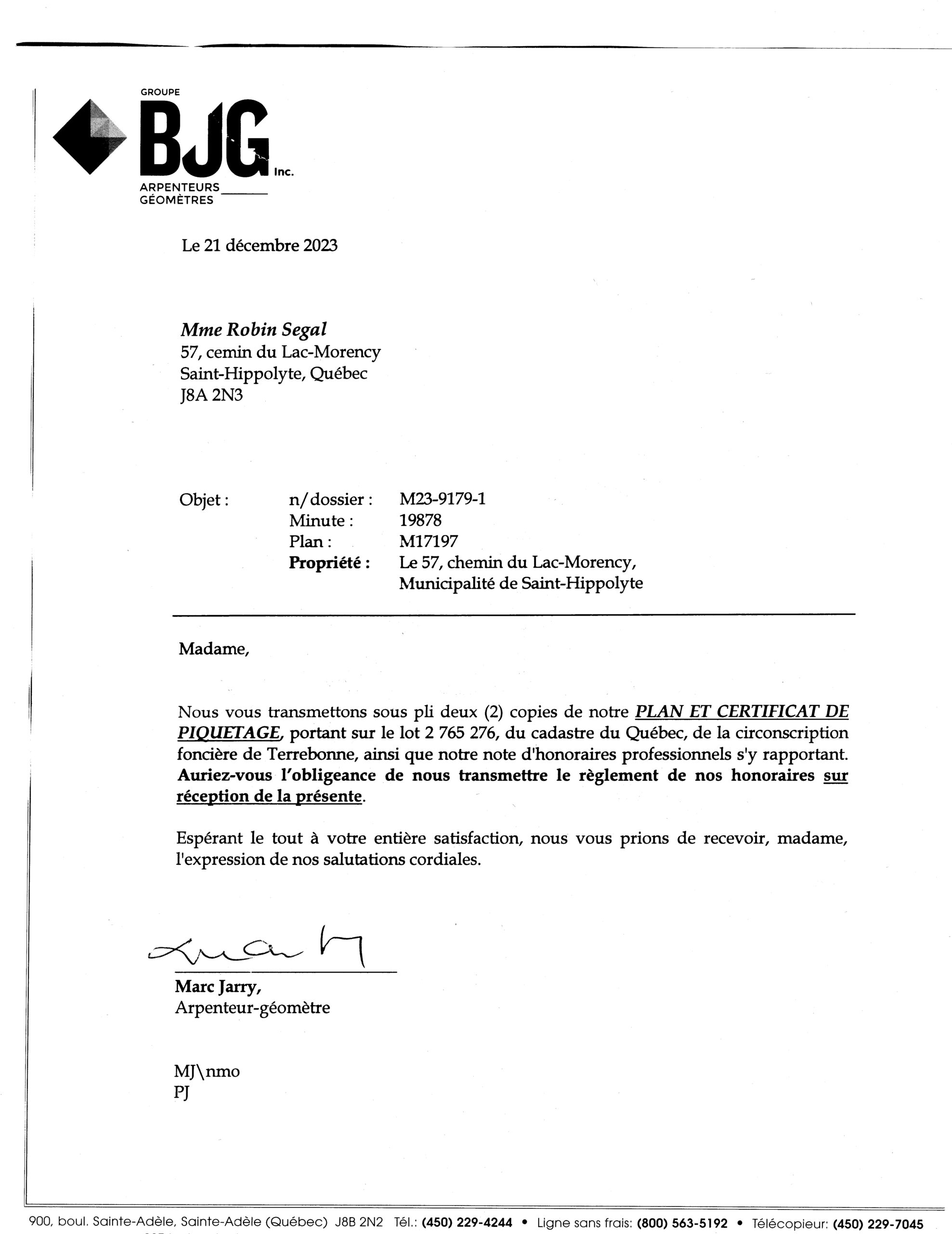 In purchasing the property at #53, the new owner signed a sale document acknowledging acceptance of the survey produced earlier in 2019. This legal acknowledgement precludes owner of #53 to claim that he was misinformed of the boundaries of his property. (see pages 3-4 of #53 property sale, DÉCLARATIONS DE L’ACHETEUR)