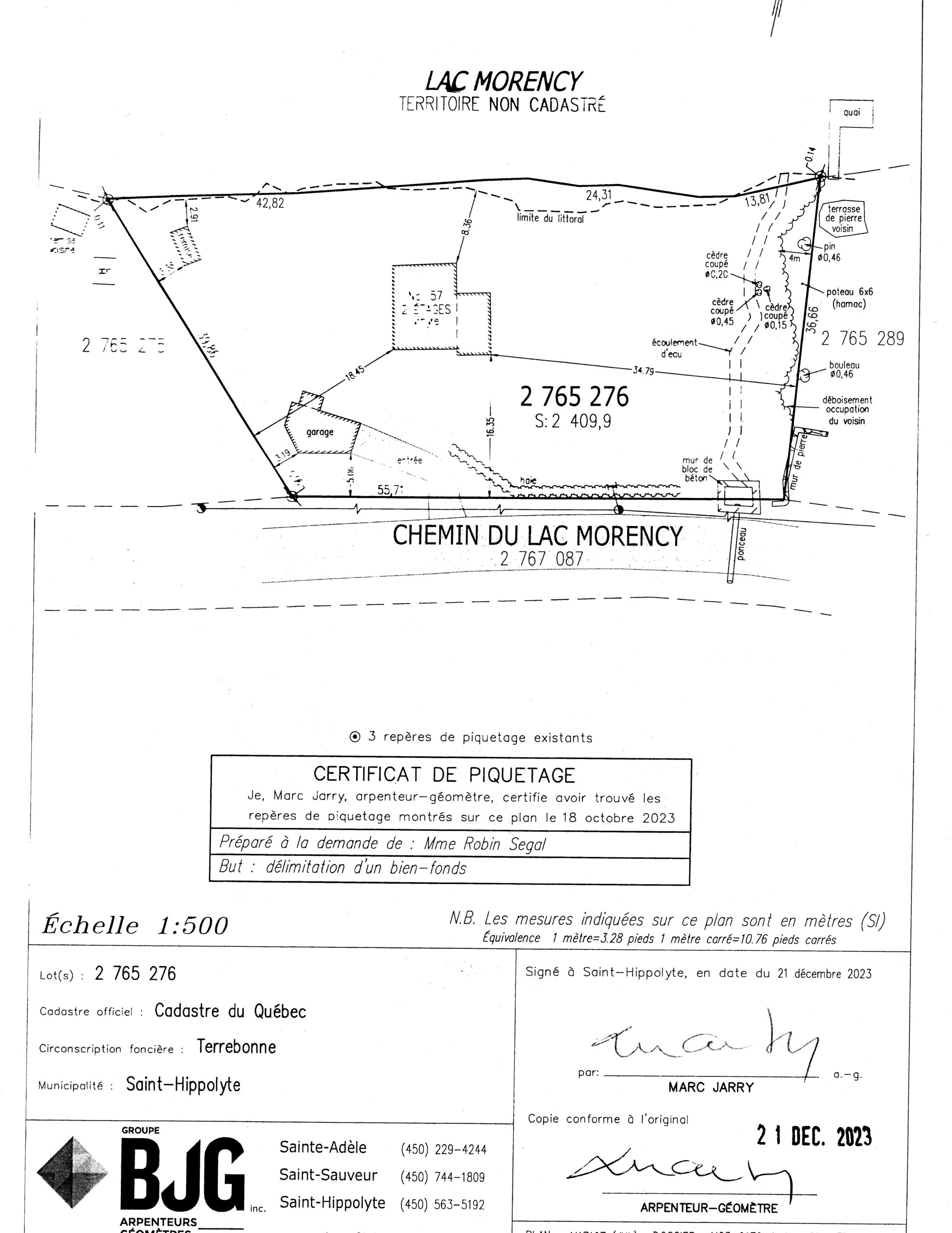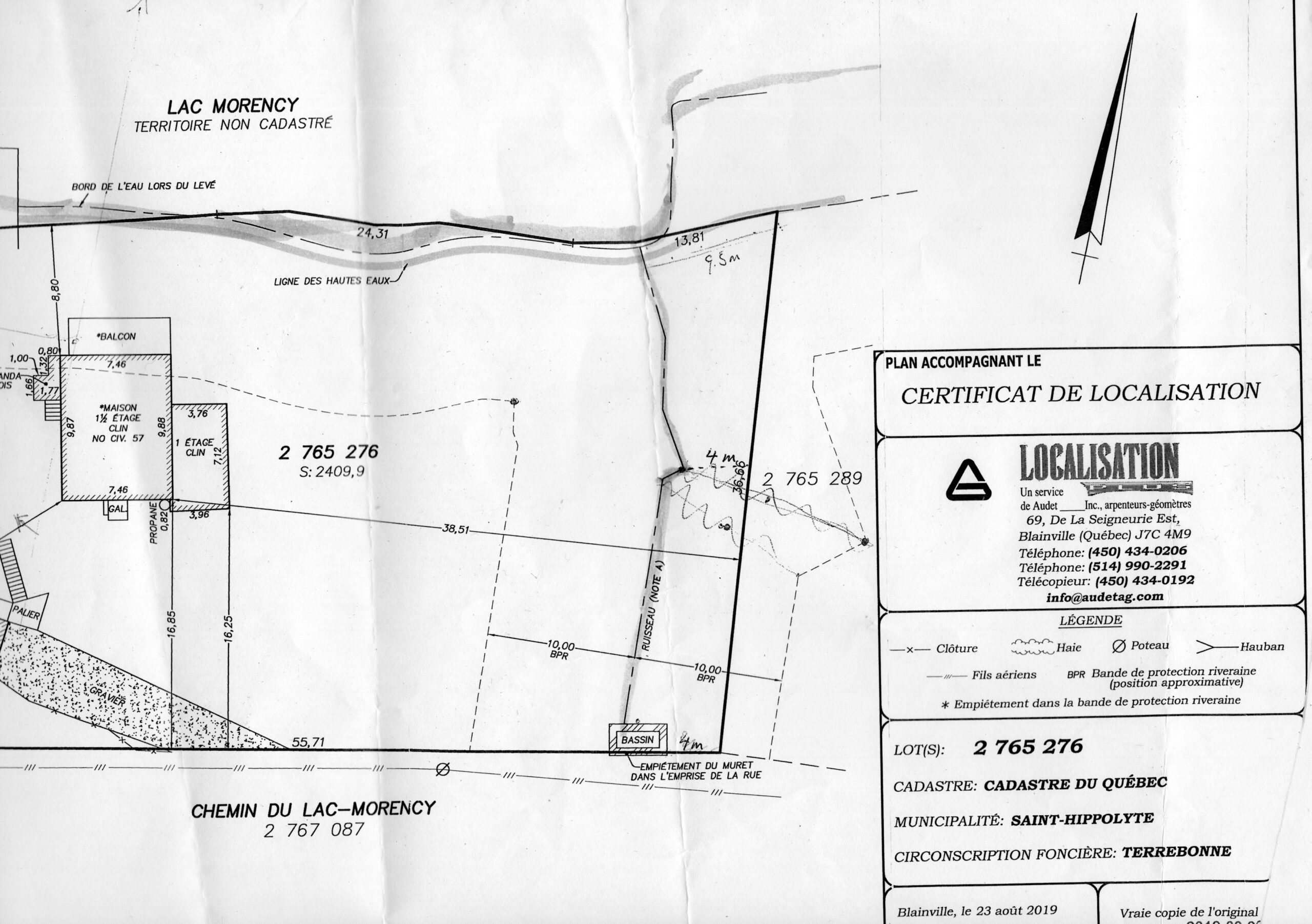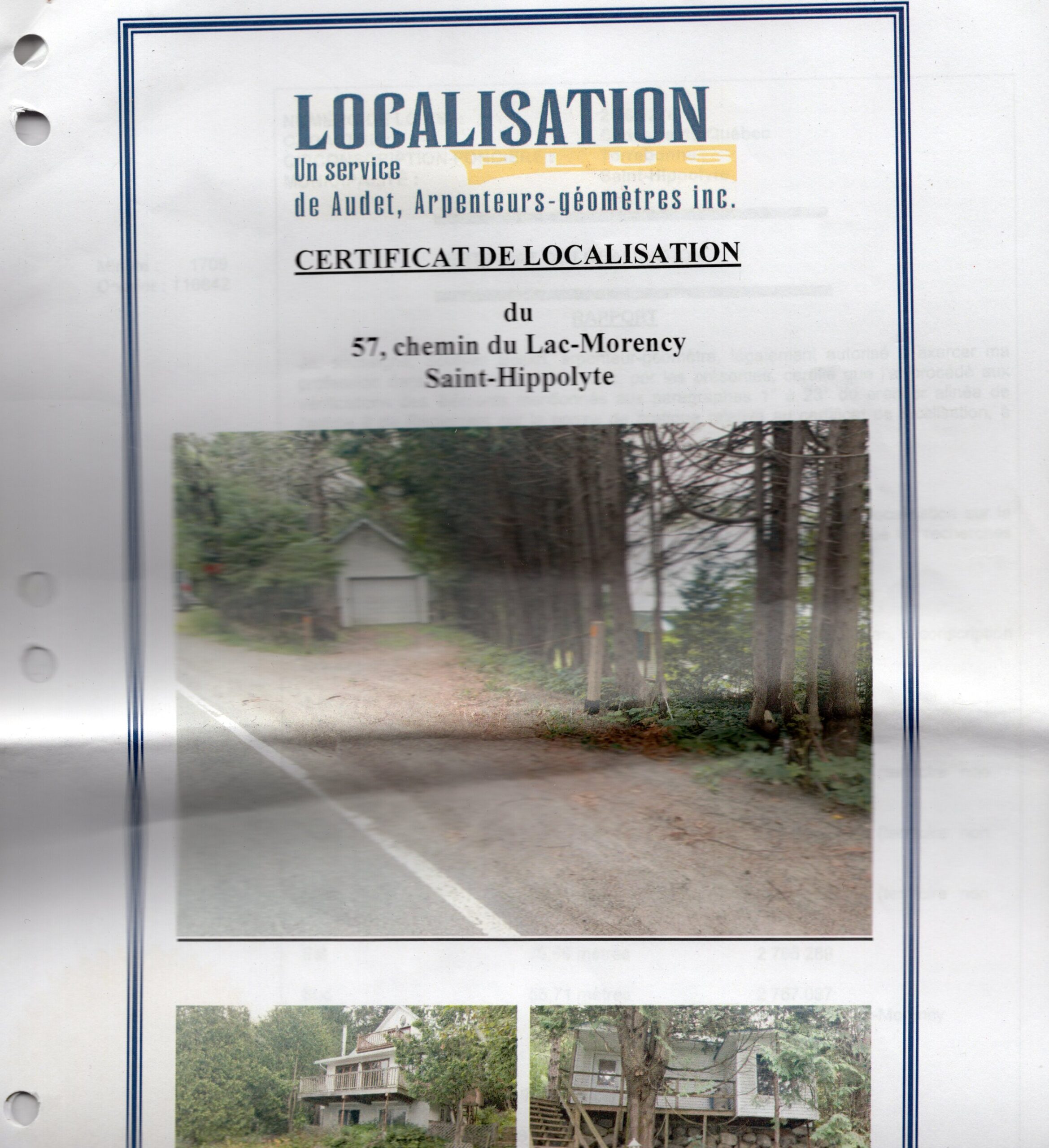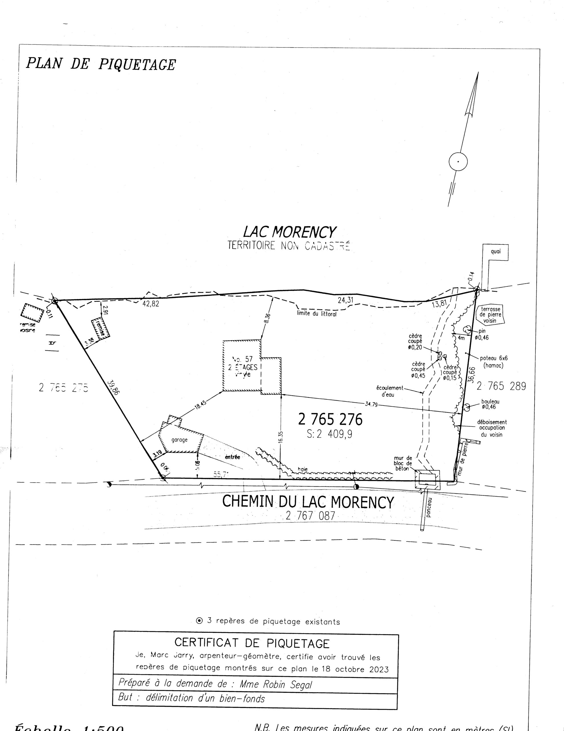 Below is enlargement of border between properties at 53 and at 57 Chemin du Lac Morency. Below that are more specific enlargements which illustrate one violation at a time.