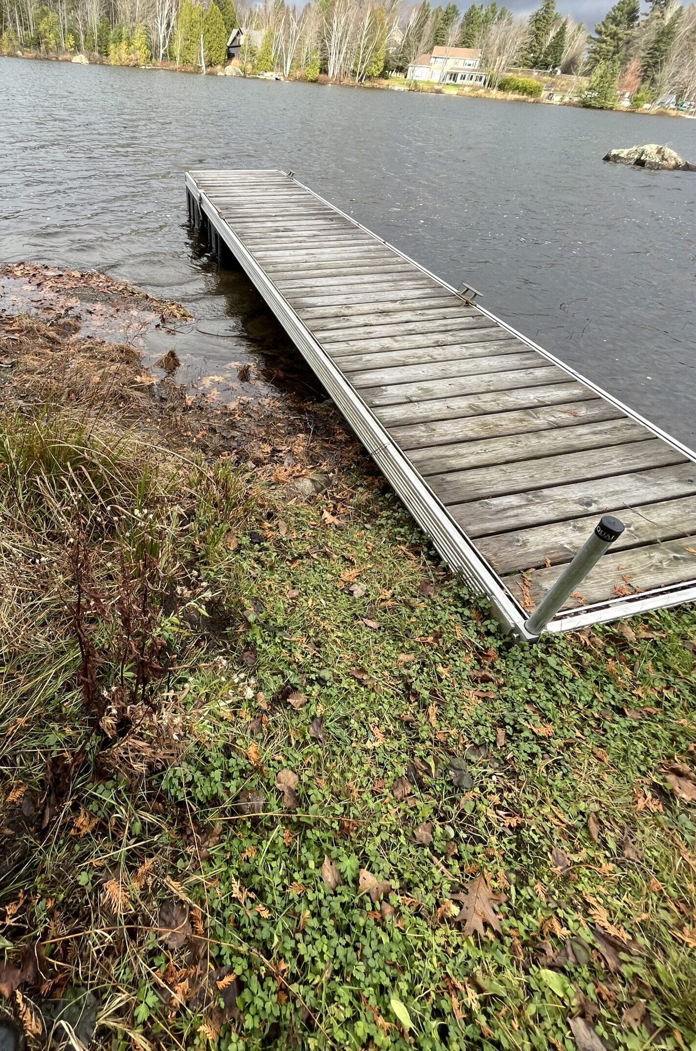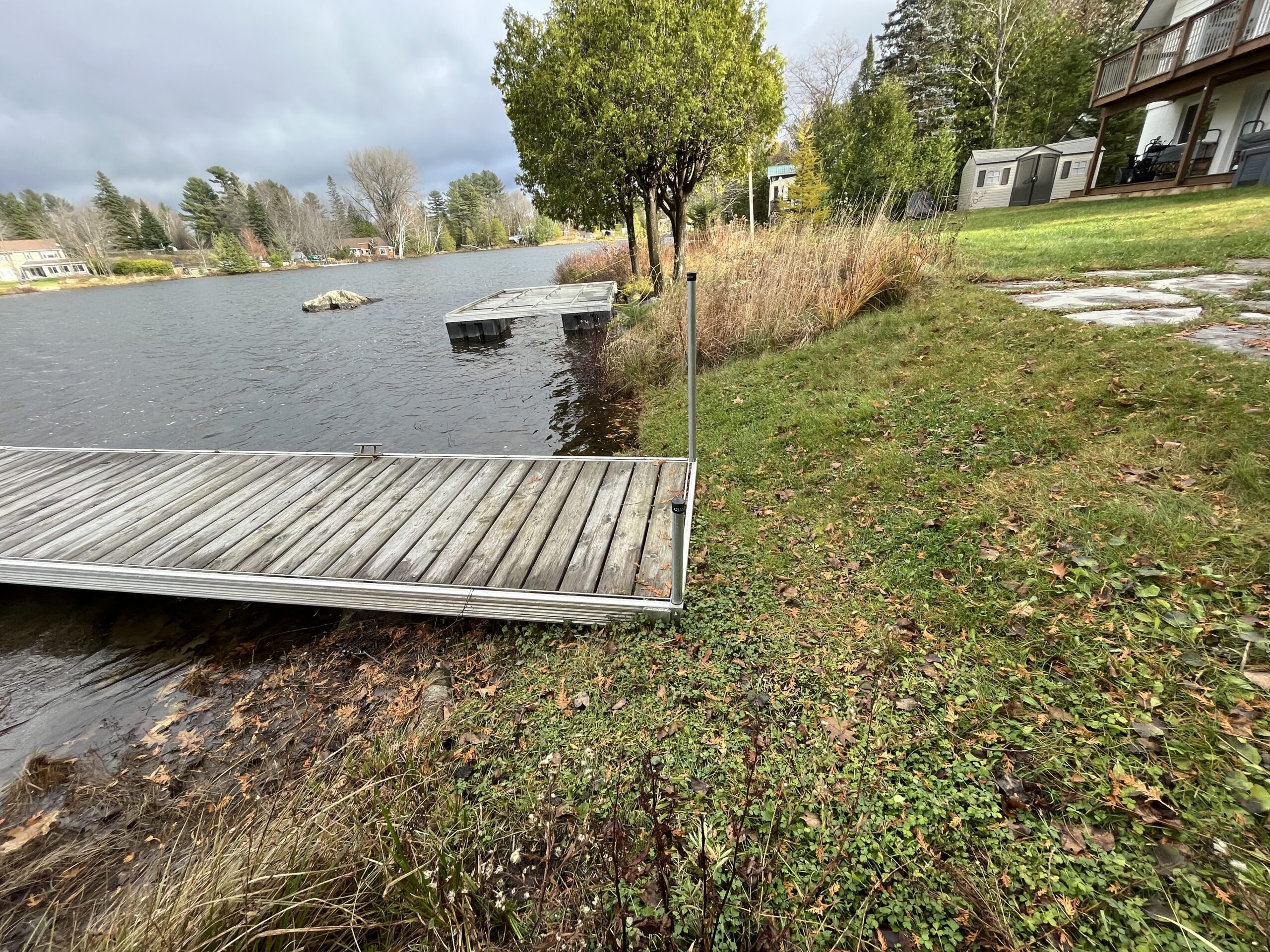 #53 currently, and every winter, stores a dock on #57’s property. The dock is chained to a tree on #57’s property.