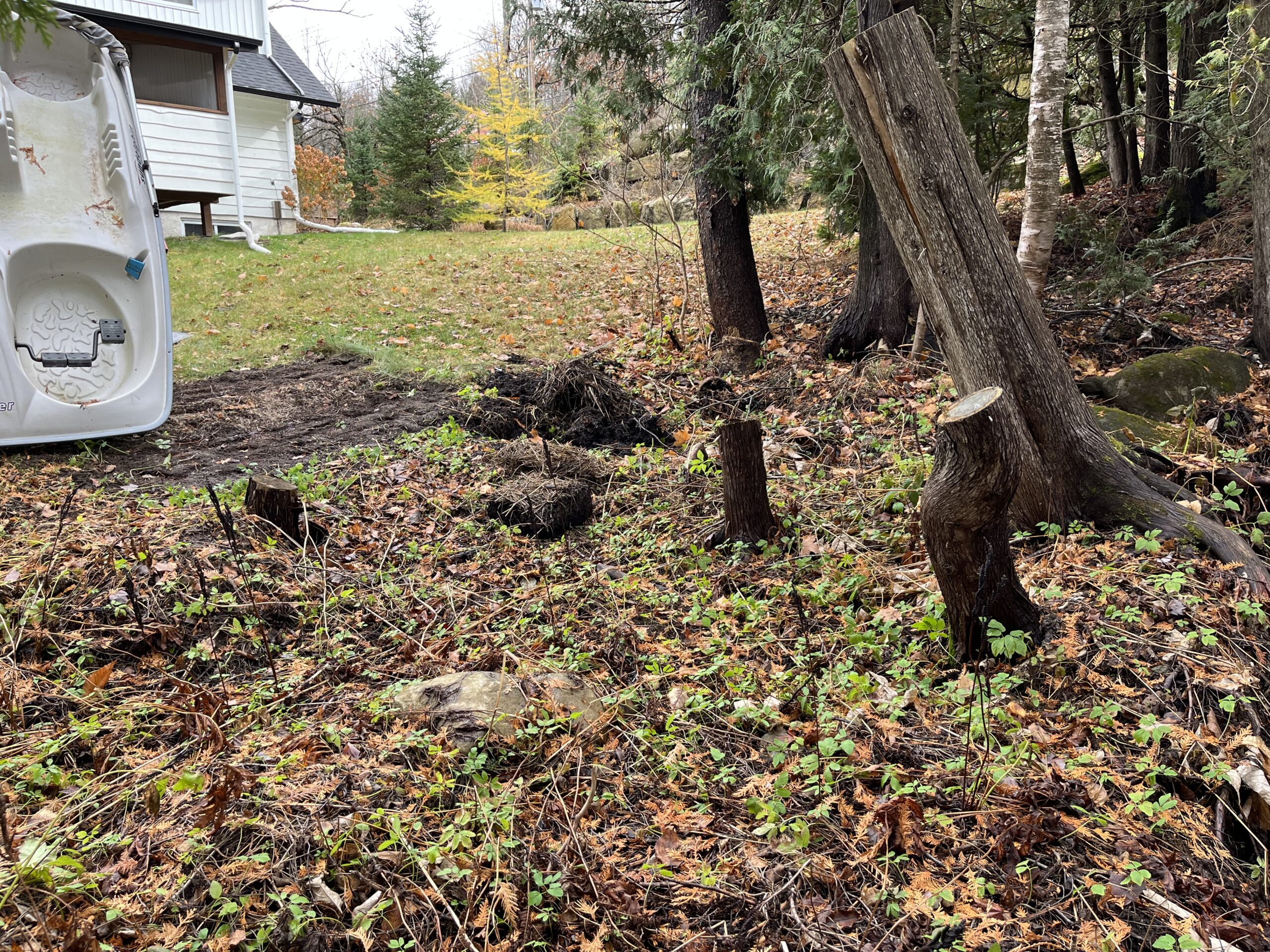 In addition to violating the protection of this sensitive area, the dumped plant matter and fertilizer constitutes trespassing to dump the matter, and dumping on private property. 2023 survey work shows the cut trees clearly on #57’s property.